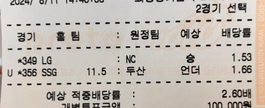 2. SSG vs 두산오원석 vs 곽빈인데 11.5는 높다고 생각함 둘다 잘 던질걸로 예상