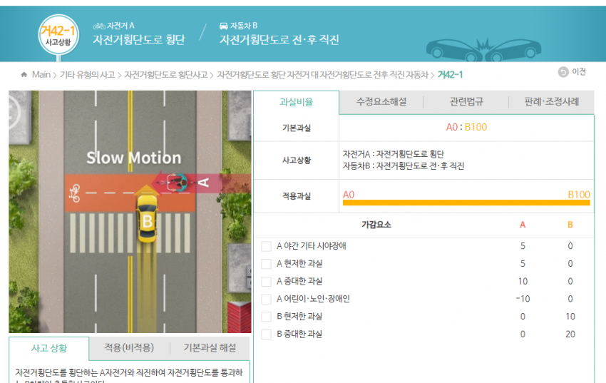 저전거횡단도로에서, 그리고 니가 신호등 초록불 떴을때 건넜으니까