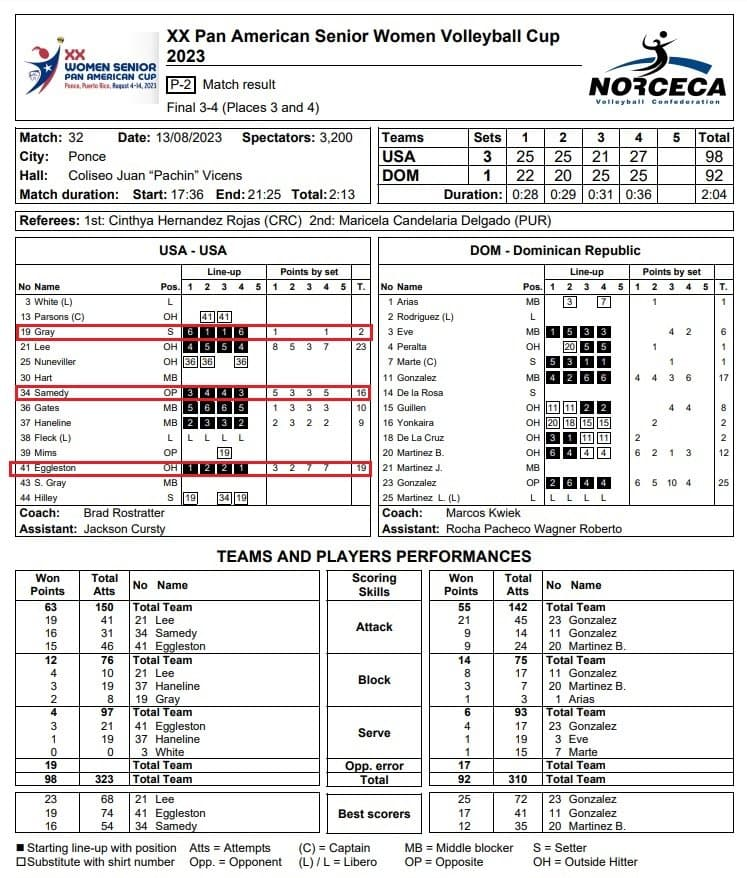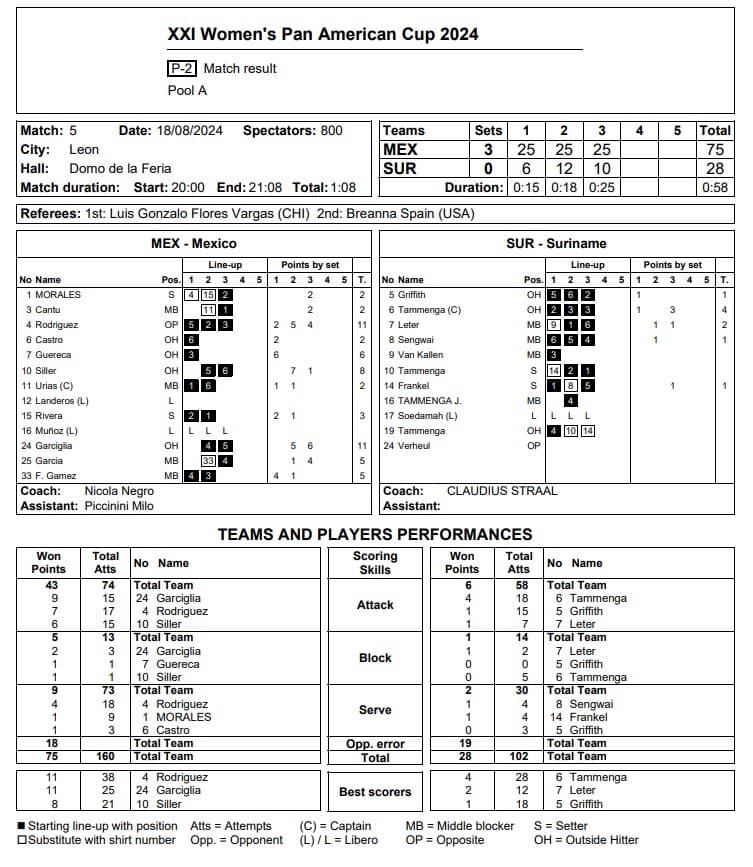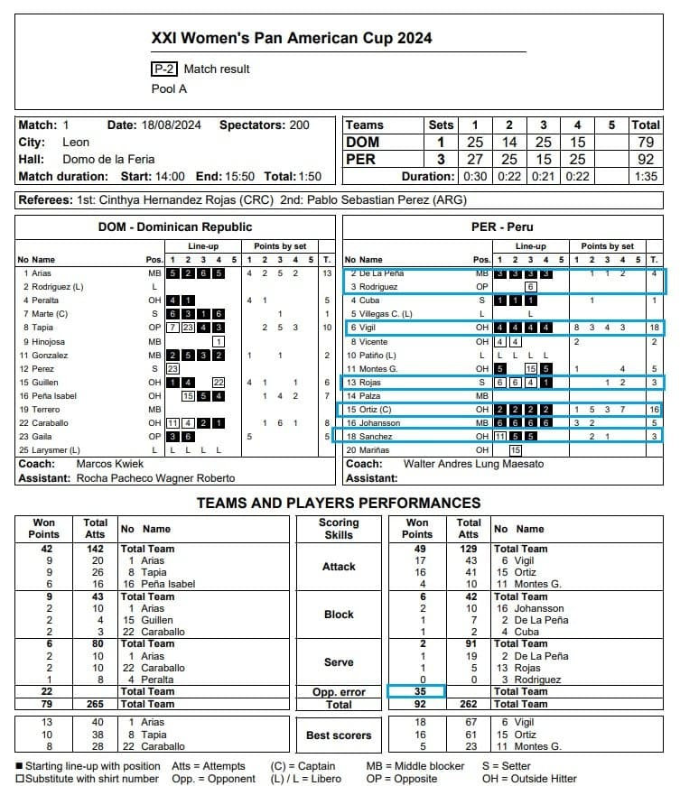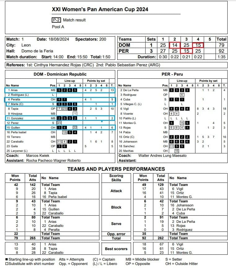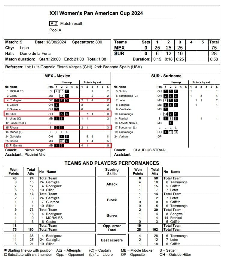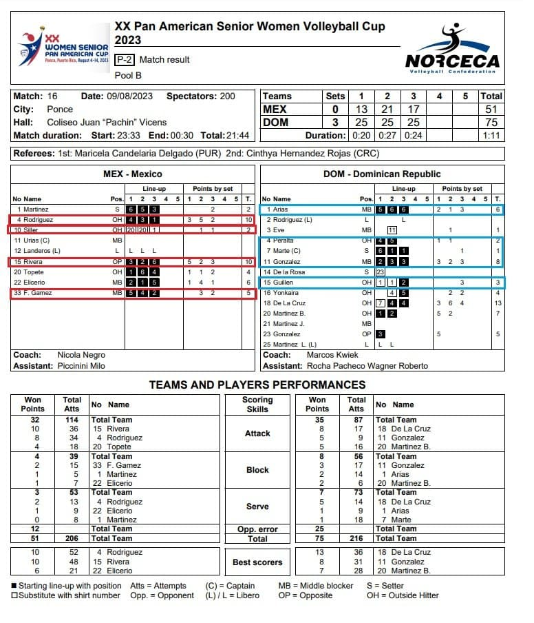 2023년에 두팀이 조별예선에서 붙었던 자료입니다.당시 멕시코는 로스터를 다 채우지도 못했고 도미니카는 1군 풀 주전 ( 2024파리 올림픽 여자 배구 로스터 ) 이 나왔습니다.