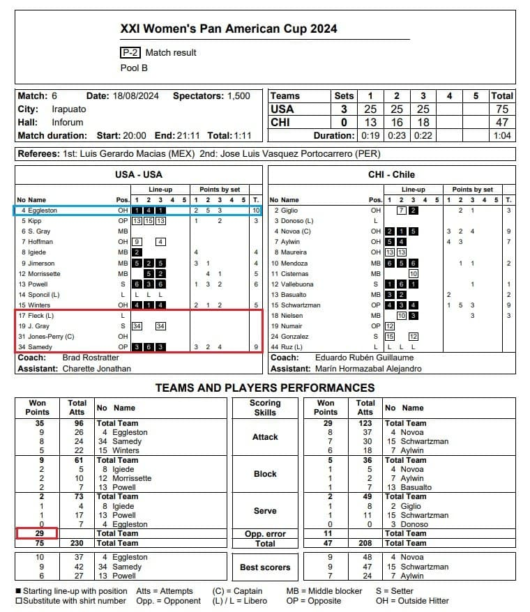 2024 이번 팬아메리카 미국과 칠레의 경기입니다.미국은 주전선수들을 제외하고 로테이션 선수들 위주로 게임을 돌렸고 그래도 3:0으로 게임을 셧아웃 시켰습니다.한가지 아쉬운점은 범실이 너무 많았다는겁니다.