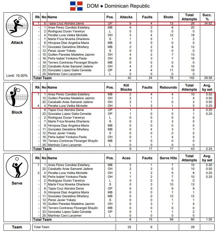 도미니카 상대로 준수한 데이터를 뽑아냈고 양쪽 아웃사이드 히터들이 득점을 잘 뽑아주었지만 블록은 아쉬움이 많이 보입니다.