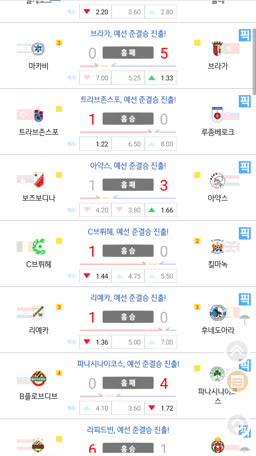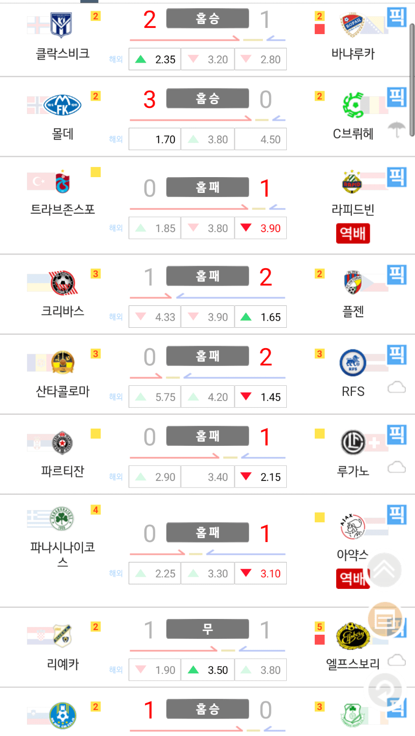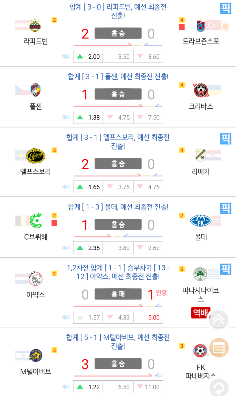 유로파 예선은 작년에도 그랬고 통계적으로 정배율이 높습니다