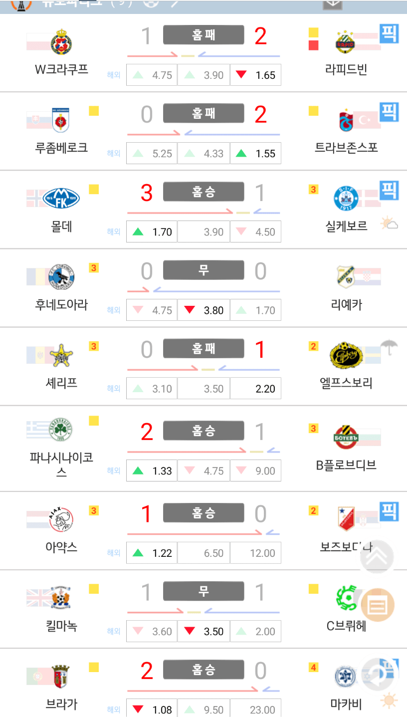 이건 지난달부터 시작된 유로파 예선 이력이구요 얼핏봐도 배당 무관하게 정배율 80% 넘습니다 걍 정배 2~3폴 3박스 까면 보통 한박스는 먹습니다 조합을 어떻게 잘 짜볼지 고민중입니다