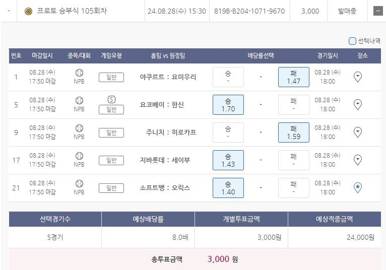 지바롯데 / 그냥 세이부 반대 꿀