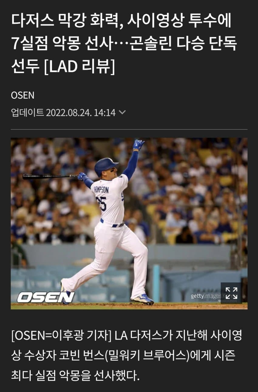 3이닝도 못 채우고 7실점 선물 ㅋ 문제는 워커뷸러죠