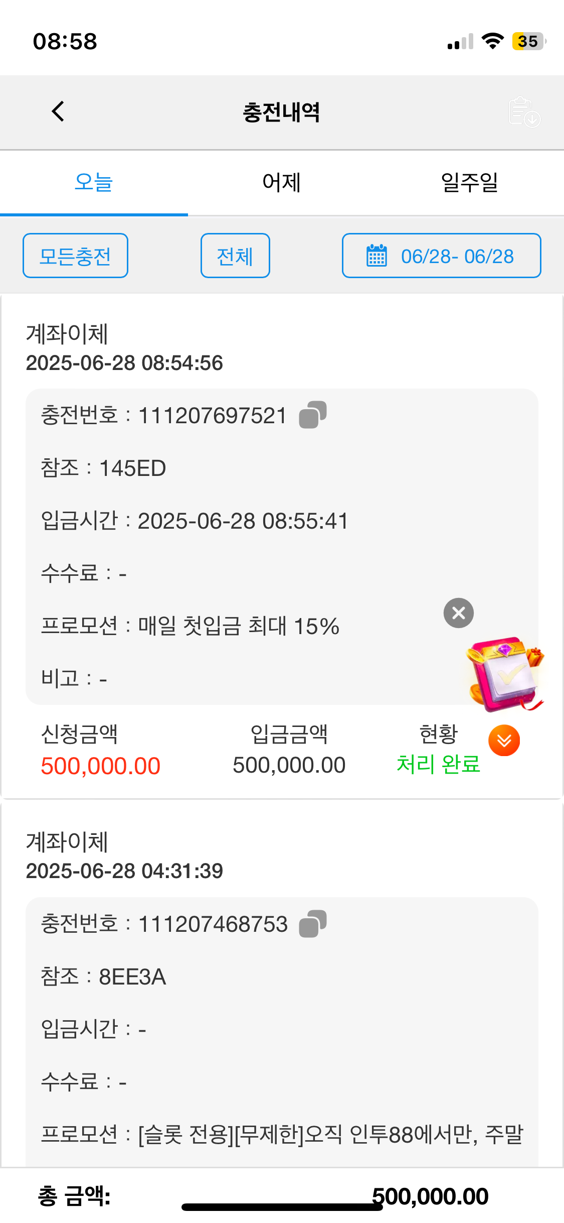 주말 동안 입금하는데 첫입금보너스로 두둑하게 받았네요 미스터리박스 첫충전 지급이벤트도 좋네요 인투88에는 다양한 이벤트가 많아서 클럽월드컵 경기만 걸고 틀리면 낙처 이벤트도 있고 울산경기걸면 치킨이벤트에 ㅜㅜ 울산은 떨어졌지만 그리고 실시간 카지노 배팅도 너무 잘 되있고 스포츠 배팅도 간편하게되있네요 ㅎㅎ