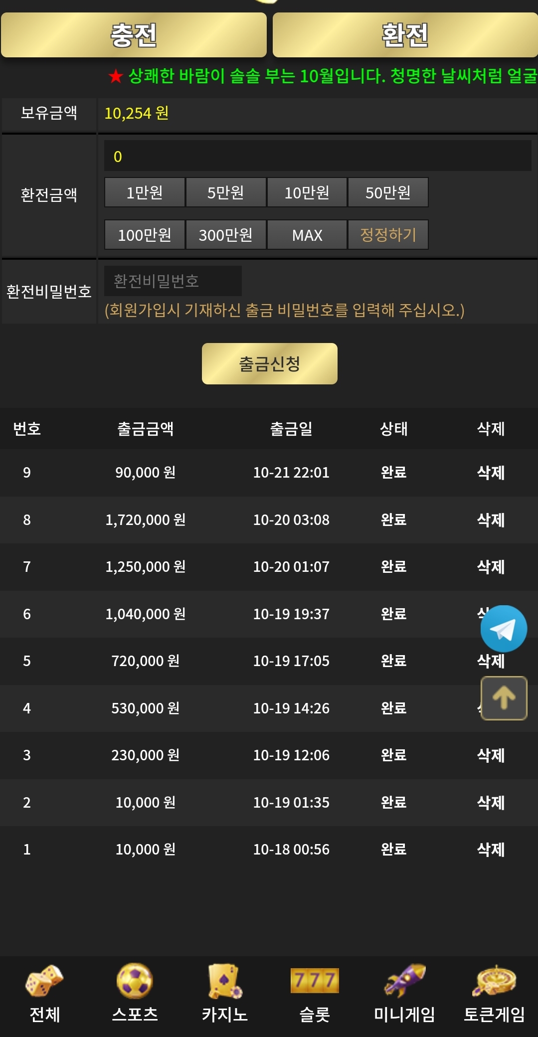 2끌림 리뷰 입니다 환전 빠르고 먹튀없고 게임많고 이벤트많은곳입니다 그리고 규정만 잘지키신다면 환전 금액이 많던적던 바로바로 입금해주네요