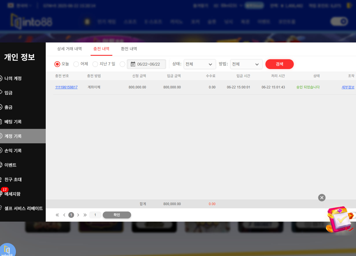 인투88으로 사이트 이전한지 2주째 되가는데요 아직 사건사고없이 잘 이용중입니다 사이트도 너무 이쁘고 전체적으로 너무 잘만든거같아서 회원들에게 이득을 주려는 사이트인거같습니다 데일리벳 후기보는 회원님들도 이 글 보시면 여기로 갈아타십쇼 진짜로 너무좋은사이트입니다 진짜 충환도 깔끔하니 잘되고 회원들을 챙기는게 보이는 사이트가 좋지않나요 ㅎㅎㅎ 다들 여기로 갈아타서 재밌게 게임해보자구요 !!