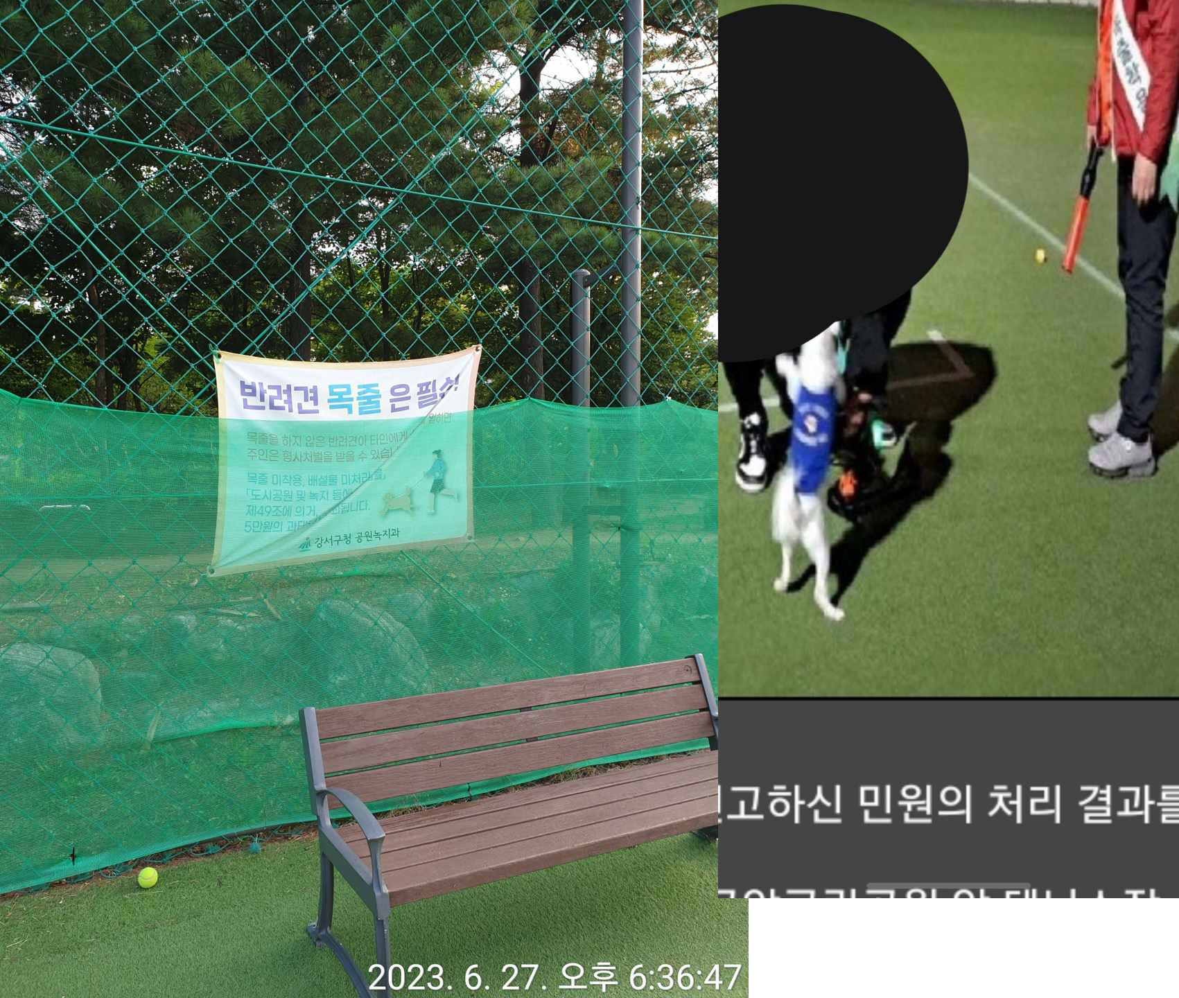 테니스장에 엄연히 목줄하라고 적혀있음.