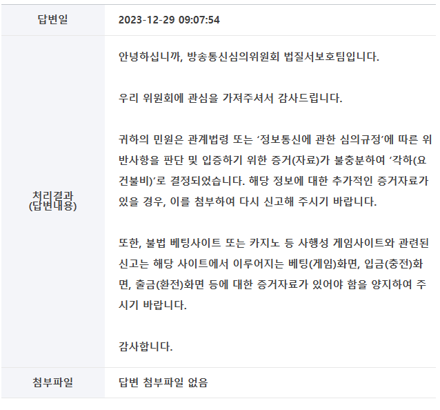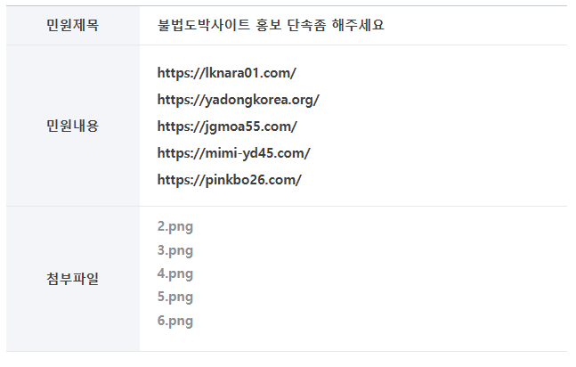 사이트 마다 이런 화면들 캡처해서 단속해달라니까 방통위로 이관시킴