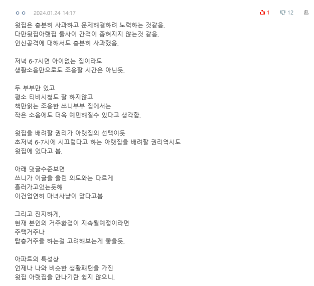 본문에서는 윗집 여자가 사과해서 글을 삭제 한다고 했는데