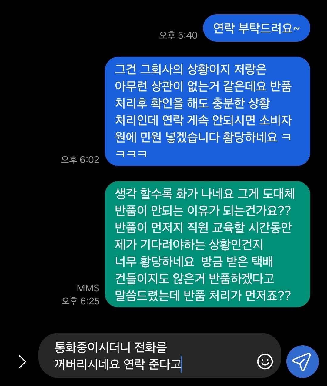 소비자는 물건을 받고 바로 반품을 하기 위해 판매자에게 연락을 했지만