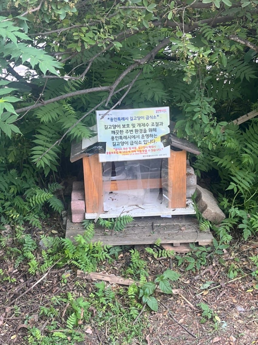 자 이게 용인시에서 운영하는 급식소야 이런 모형물을 만들어서 안에 사료랑 물 등을 제공하는거지