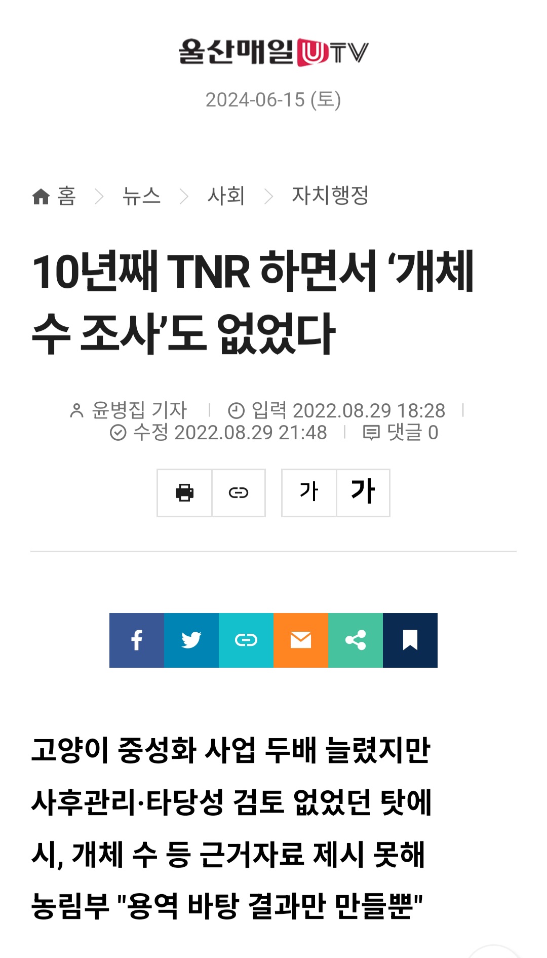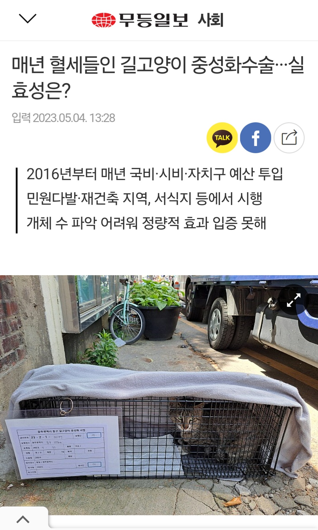 아래 기사는 중성화작업과 관련해서 작년과 재작년에도 계속해서 지적되어왔던 내용이야
