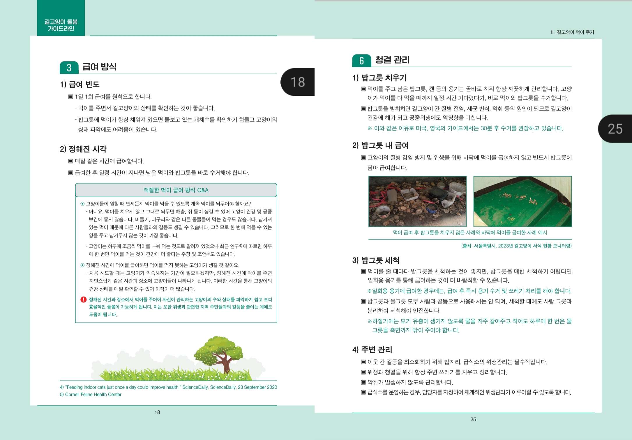 이거에 대한 가이드라인으로 농식품부에서 길고양이 돌봄 가이드라인을 내놨어