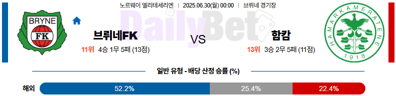 축구 06월 30일 노르웨이 1부 브뤼네FK vs 함캄