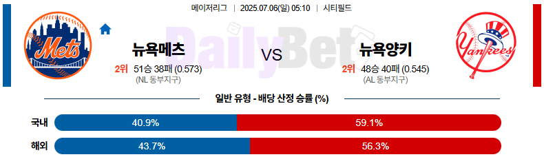⚾️ 뉴욕 메츠 vs 뉴욕 양키스 (MLB)