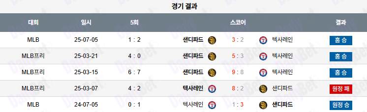 07월 06일 MLB 샌디에이고 vs 텍사스