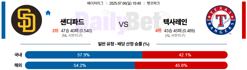 야구 07월 06일 MLB 샌디에이고 vs 텍사스
