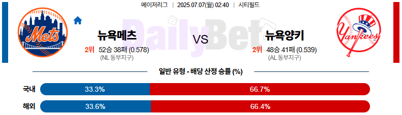 ⚾️ 뉴욕 메츠 vs 뉴욕 양키스 (MLB)
