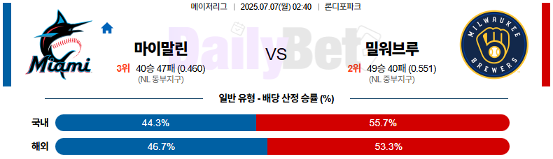 07월 07일 MLB 마이애미 vs 밀워키