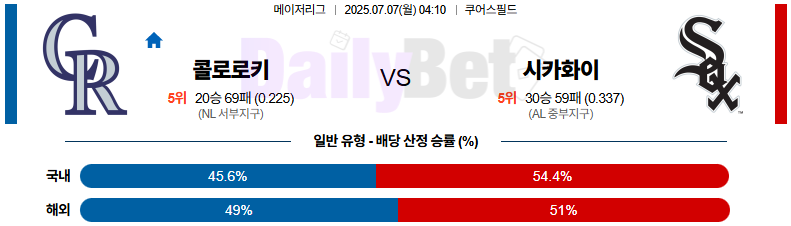 야구 07월 07일 MLB 콜로라도 vs 시카고W