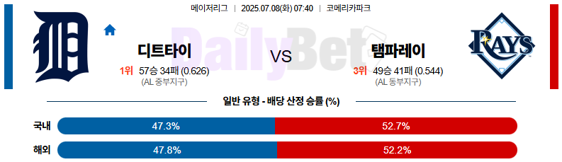⚾️ 디트로이트 타이거즈 vs 탬파베이 레이스 (MLB)