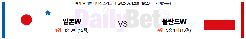 배구 07월 12일 네이션스리그 (w) 일본 vs 폴란드