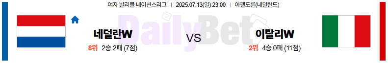 배구 07월 13일 네이션스리그 (w) 네덜란드 vs 이탈리아