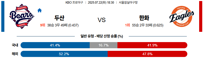 ⚾️ 두산 베어스 vs 한화 이글스 (KBO)