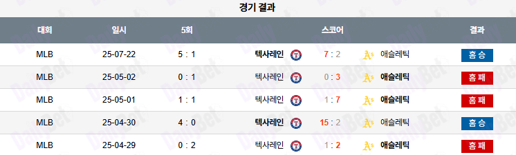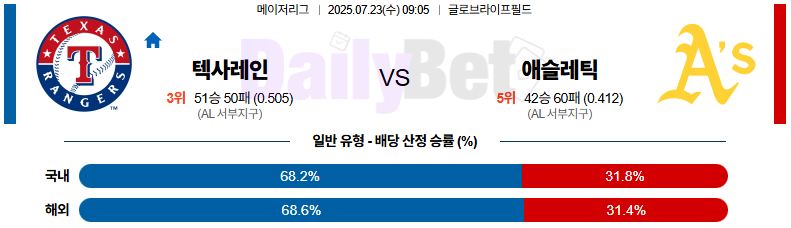 야구 07월 23일 MLB 텍사스 vs 애슬레틱스