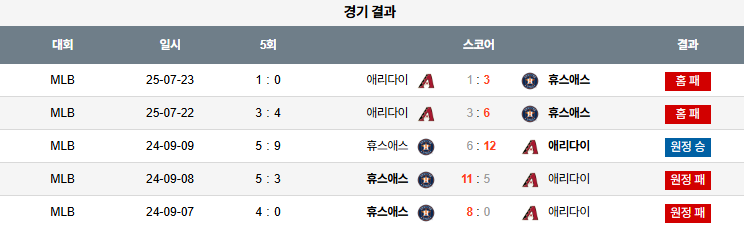 야구 07월 24일 MLB 애리조나 vs 휴스턴