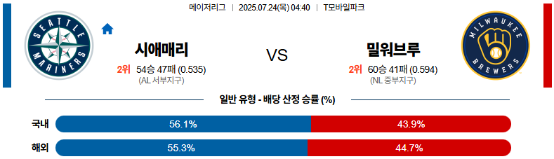 ⚾️ 시애틀 매리너스 vs 밀워키 브루어스 (MLB)