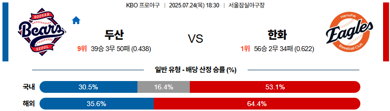 ⚾️ 두산 베어스 vs 한화 이글스 (KBO)