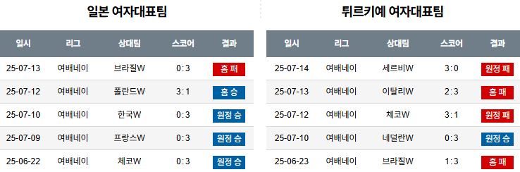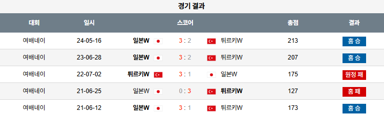 일본은 빠른 템포 전개와 완성도 높은 수비, 안정적인 마무리로 경기 흐름을 이어가며, 중반 이후에도 집중력을 잃지 않는 팀이다. 튀르키예는 리시브와 블로킹에서 조직력 부족과 체력 저하가 겹쳐 연속 실점 위험이 높으며, 전체적으로 일본보다 경기 운영에 취약하다. 전술적 완성도와 집중력에서 앞서는 일본이 경기 내내 주도권을 유지하며 승리를 거둘 것으로 전망된다.