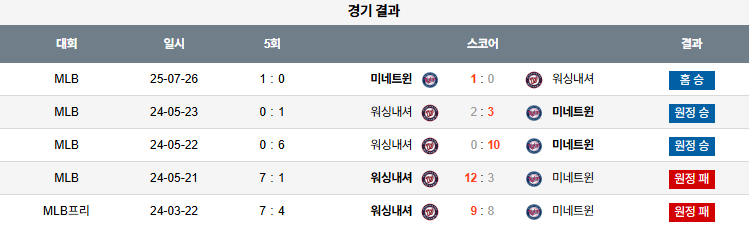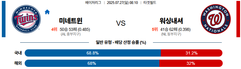 야구 07월 27일 MLB 미네소타 vs 워싱턴