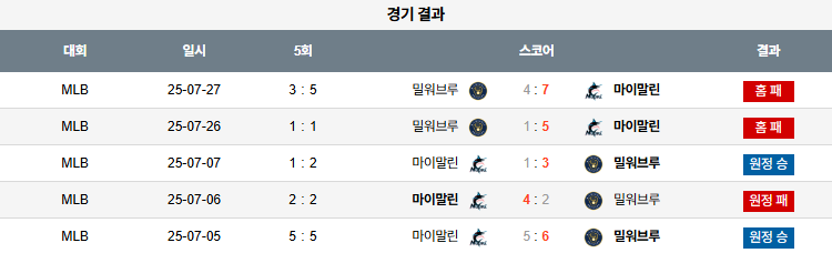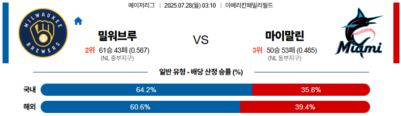 야구 07월 28일 MLB 밀워키 vs 마이애미