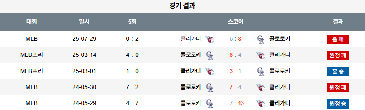 야구 07월 30일 MLB 클리블랜드 vs 콜로라도