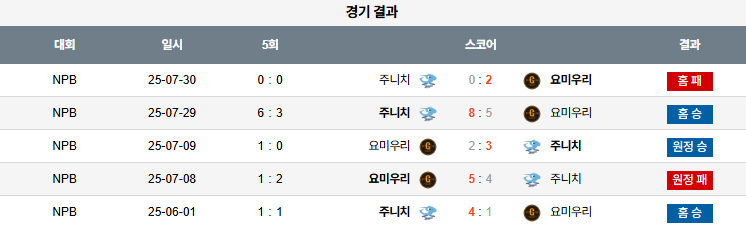 야구 07월 31일 NPB 주니치 vs 요미우리