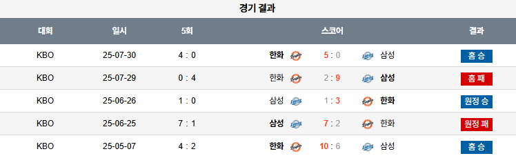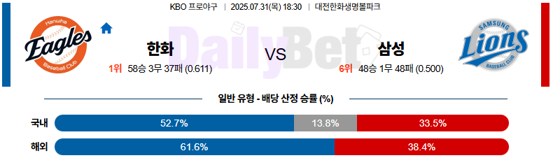 ⚾️ 한화 이글스 vs 삼성 라이온즈 (KBO)