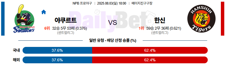 ⚾️ 야쿠르트 스왈로즈 vs 한신 타이거즈 (NPB)