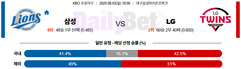 ⚾️ 삼성 라이온즈 vs LG 트윈스 (KBO)