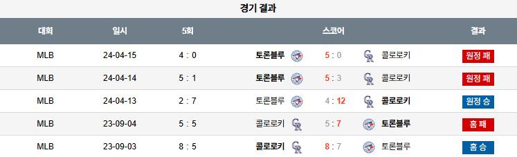 야구 08월 05일 MLB 콜로라도 vs 토론토