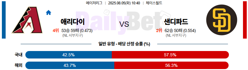 08월 05일 MLB 애리조나 vs 샌디에이고