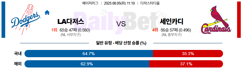 야구 08월 05일 MLB LA다저스 vs 세인트루이스