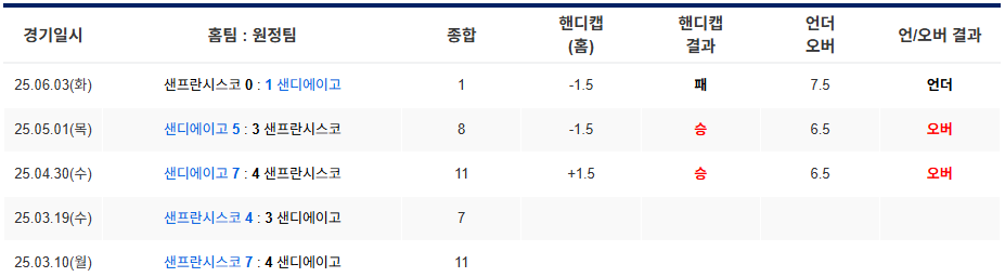 다만 샌프란시스코는 불펜 소모 누적과 마무리 흔들림 부담.