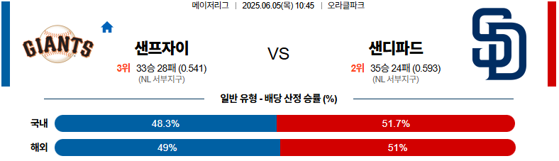 야구 06월 05일 MLB 샌프란시스코 vs 샌디에이고