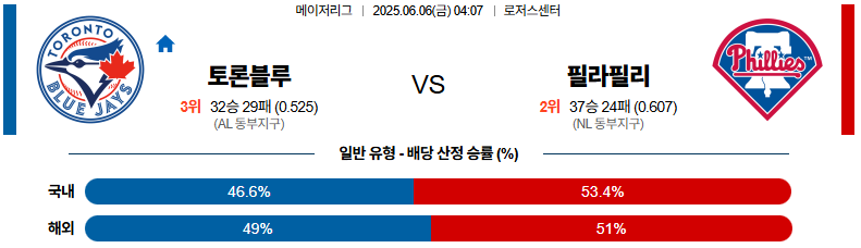 야구 06월 06일 MLB 토론토 vs 필라델피아