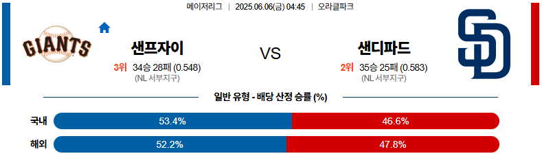 ⚾️ 샌프란시스코 자이언츠 vs 샌디에이고 파드리스
