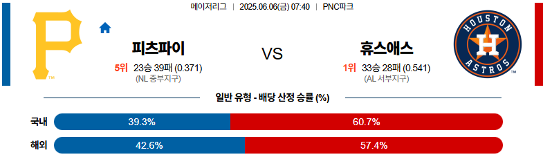 야구 06월 06일 MLB 피츠버그 vs 휴스턴